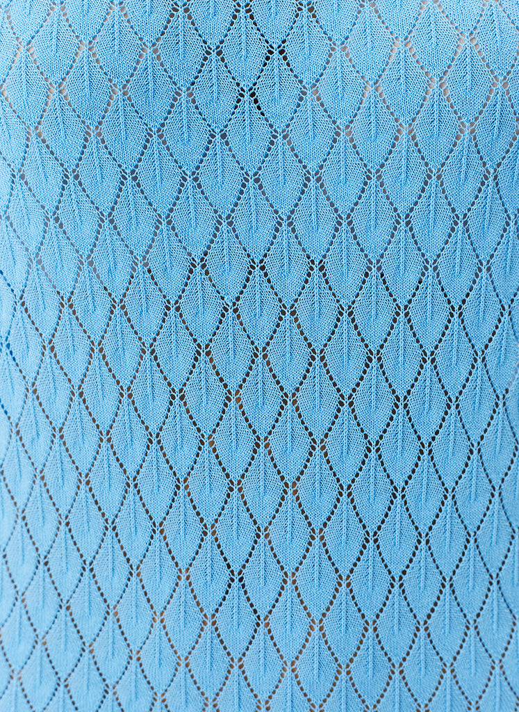 Relaxed and lightweight, add to your beachwear collection with the Ambra Dress. The perfect beach cover-up, this piece is crafted from luxe fine knit in Ocean blue. Semi-sheer with a subtle diamond pattern, this dress falls to a short, mid-thigh length. Sleeveless, with a round neck, the comfortable tie waist adds to its relaxed appeal, with a signature gold-branded plaque completing the style.