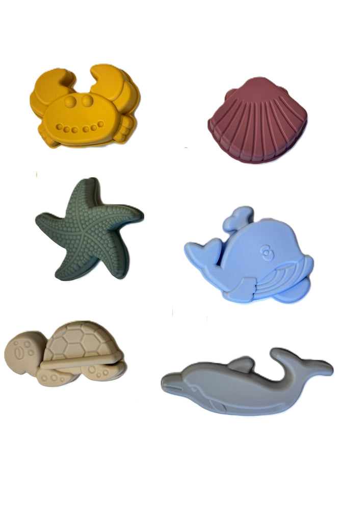- 6 pieces silicon molded sea animals (crab, shell, turtle, starfish, dolphin, whale)