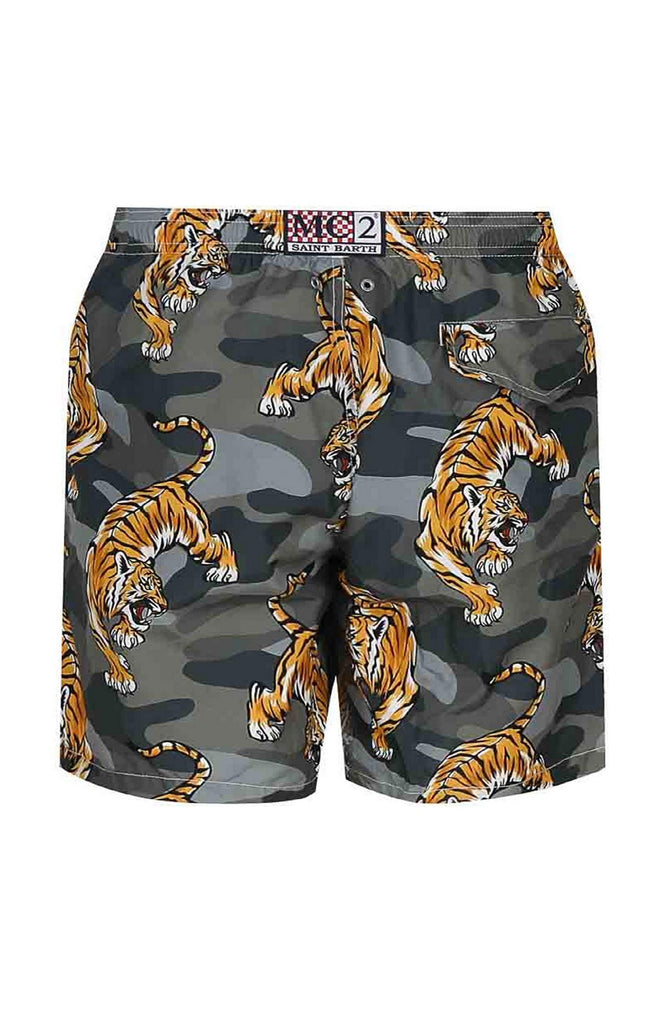 MC2 SAINT BARTH Men Swim Shorts Lightweight Fabric Lighting Tropical Tiger