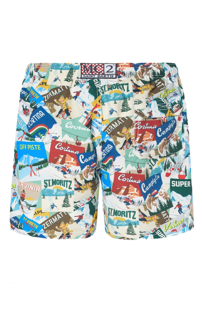 MC2 SAINT BARTH Men Mid-Length Swim Shorts Postcards Print