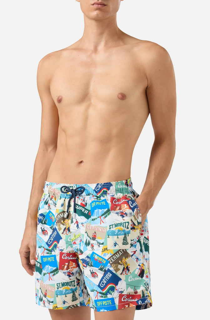 MC2 SAINT BARTH Men Mid-Length Swim Shorts Postcards Print