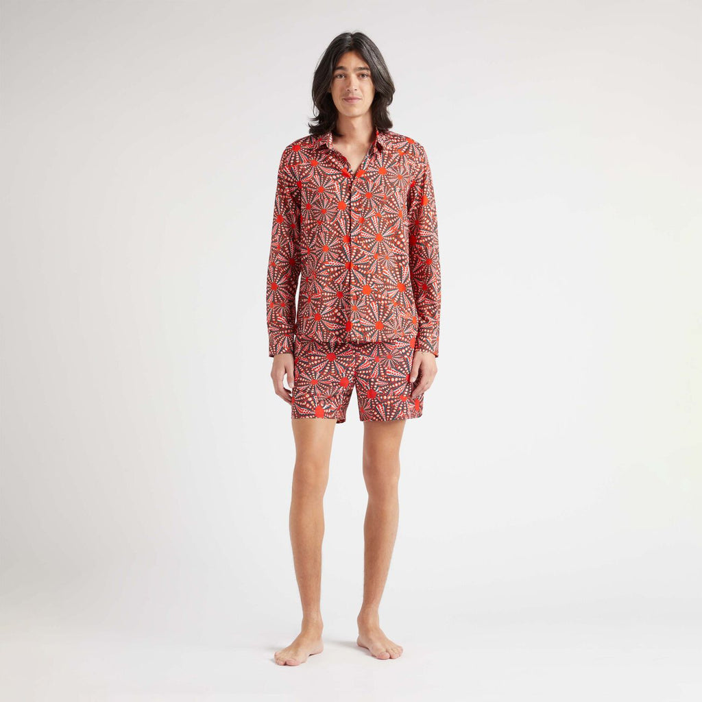 Perfect for warmer climes, this Oursinades print long-sleeve cotton shirt for men combines sophistication with a relaxed holiday feel. Fashioned from organic cotton in a slim fit, the ideal holiday accessory.
