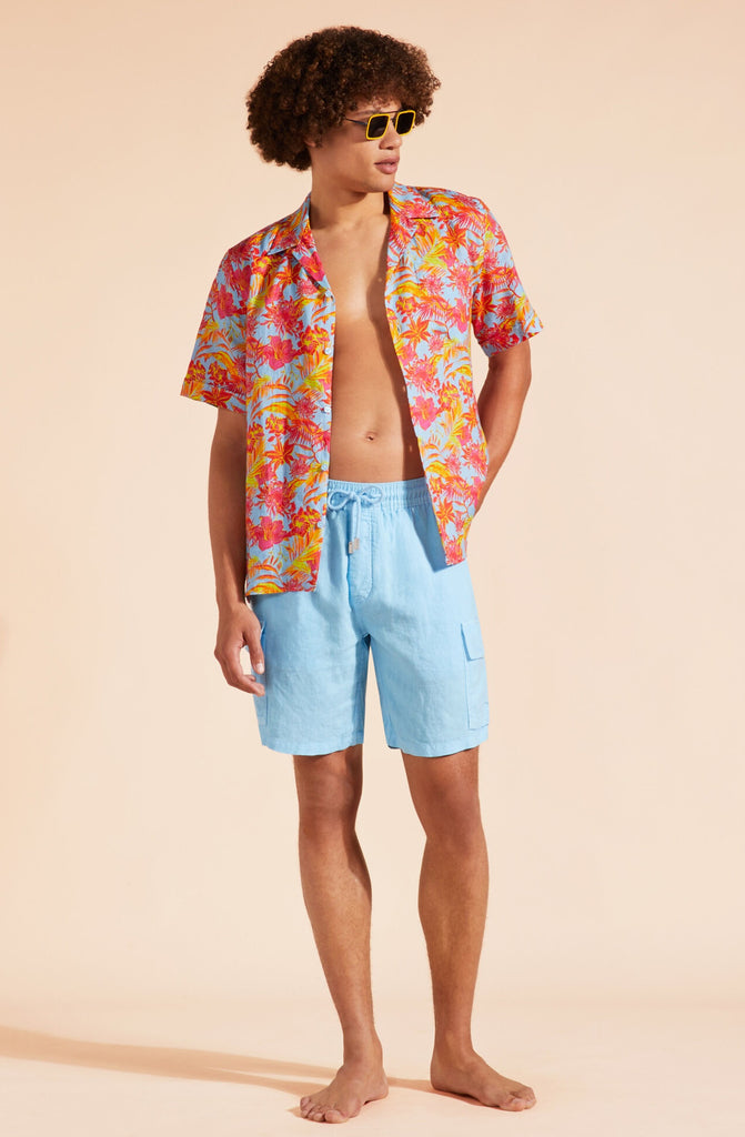 VILEBREQUIN Men Linen Bermuda Shorts Cargo Pockets