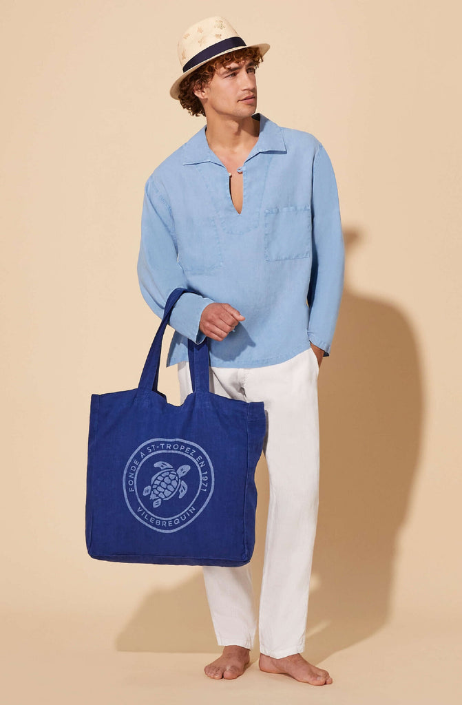 Wear colors in style over a pair of aptly named men’s plain linen trousers. Whatever the shade, this overdyed Panache blends navy elegance with studied casualness for a sunny getaway.