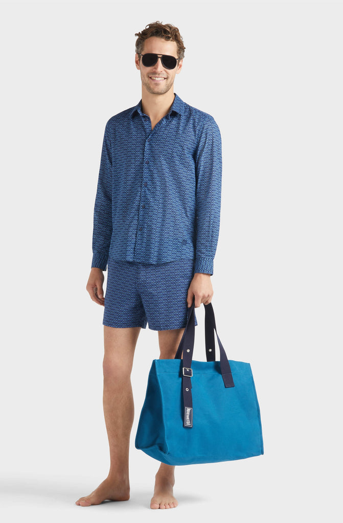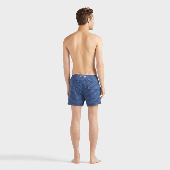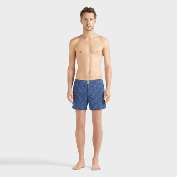 - Short swim trunks shorts with a flat waistband, featuring a custom Vilebrequin snap button and a tone-on-tone zip fly