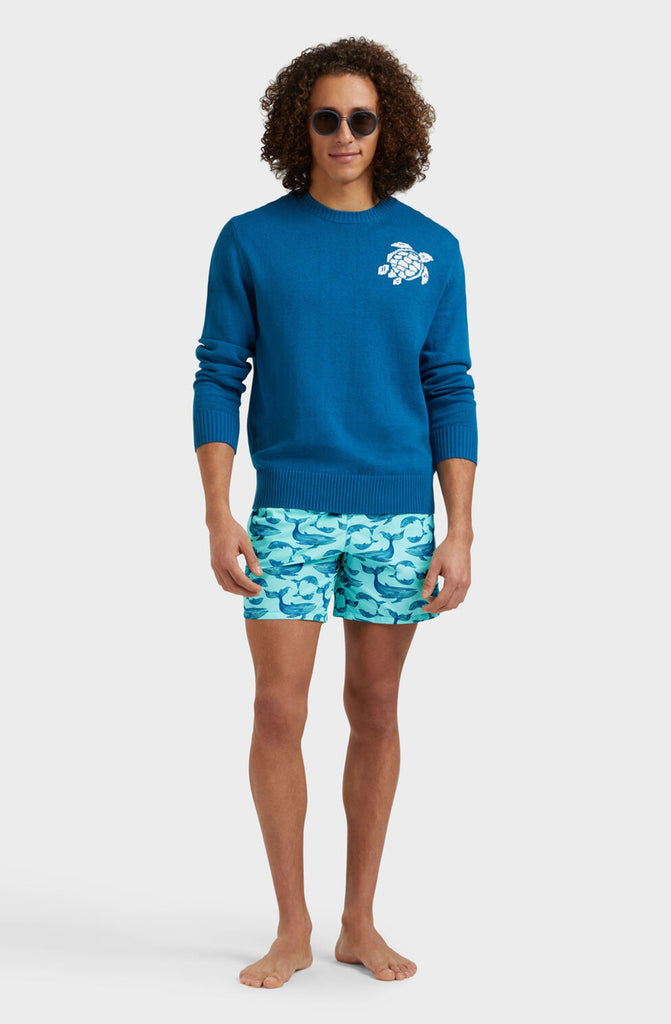 These marine-inspired men’s swim shorts represent the West Coast's pastel colours. Adorned with a whale print, crafted from recycled polyamide and featuring iconic Vilebrequin engraved tips, for carefree confidence.