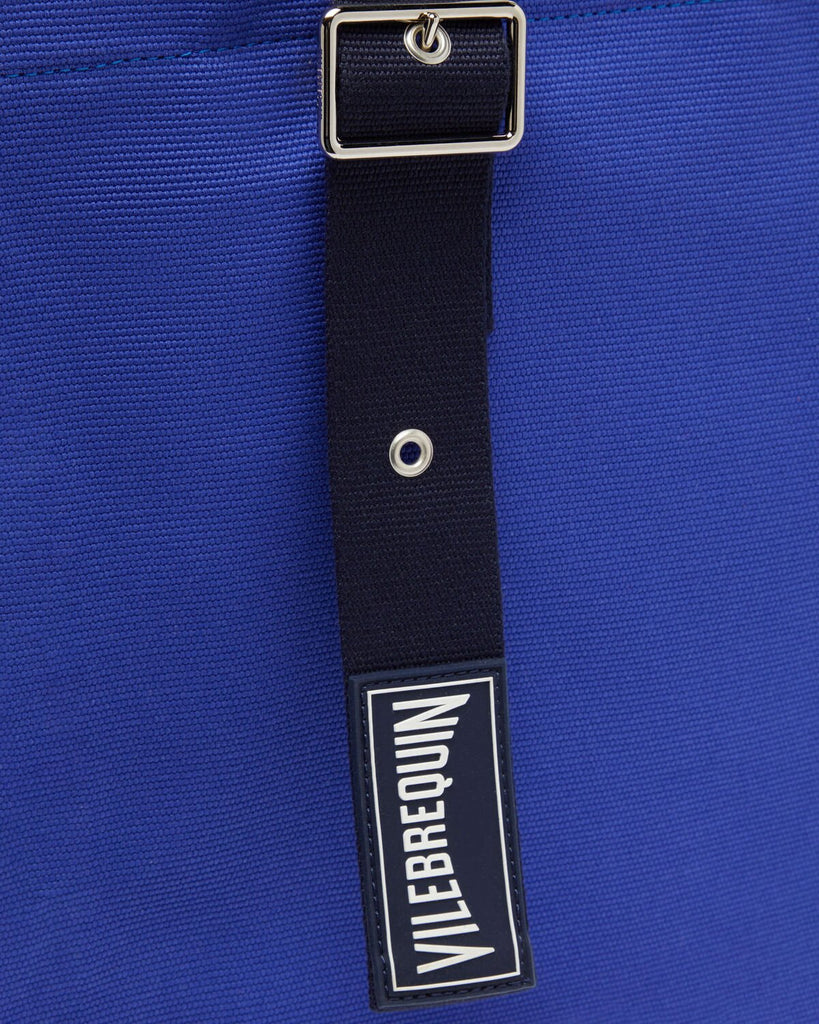 - Two cotton handles, adjustable by two eyelets levels One navy blue patch rubber with Vilebrequin logo on one of the handles and on the inside pocket
