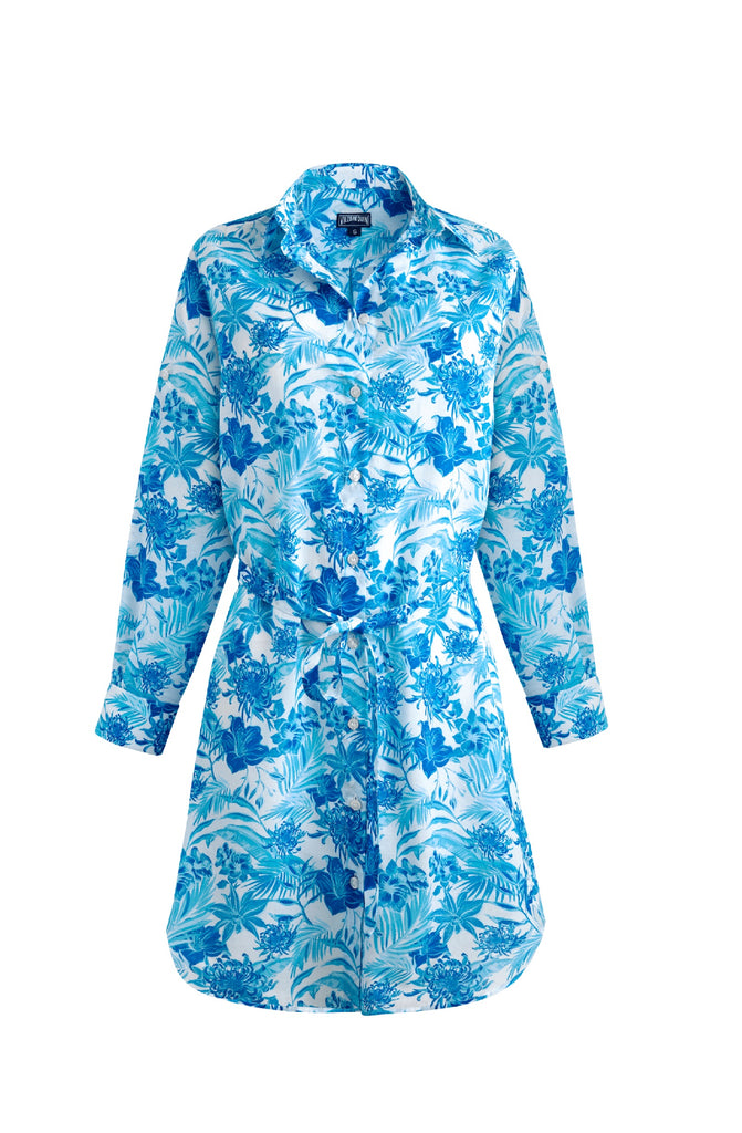 VILEBREQUIN Women Cotton Voile Shirt Dress Tahiti Flowers
