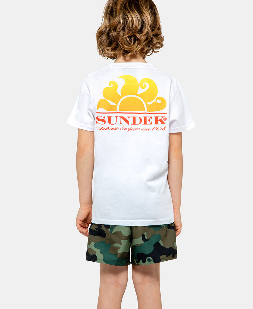 Jersey cotton short sleeve, crew neck T-shirt. Sundek logo print. Model wears size 6. Sizes refer to kids' age.