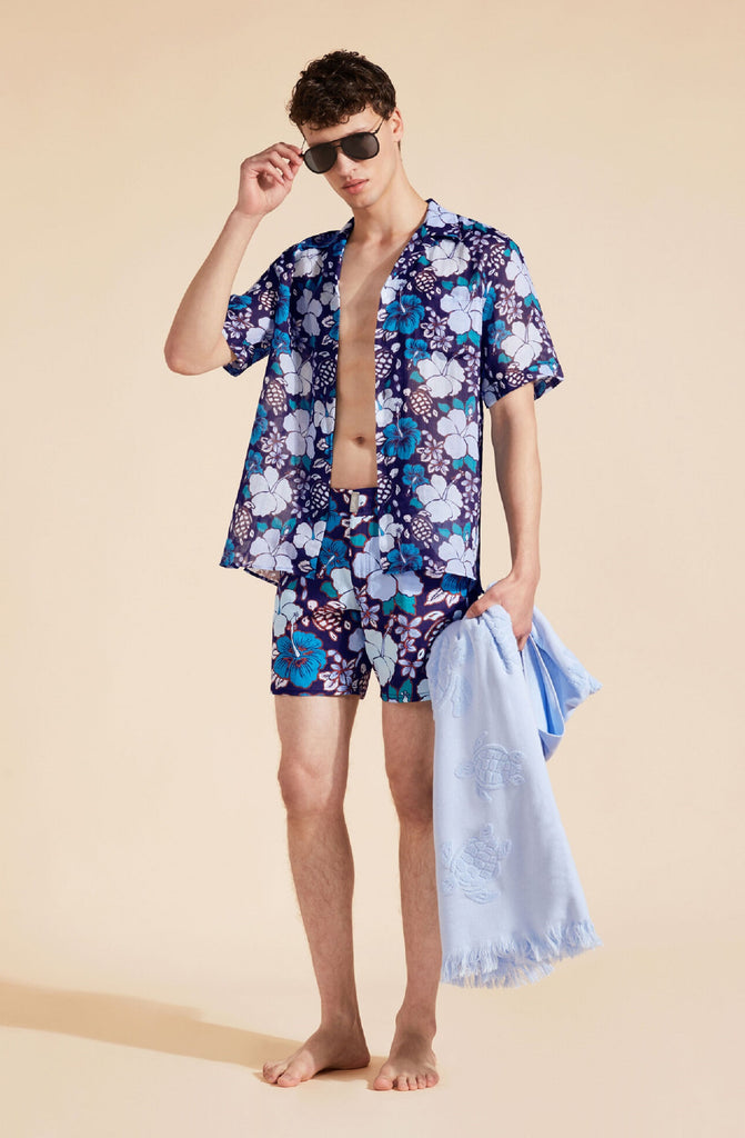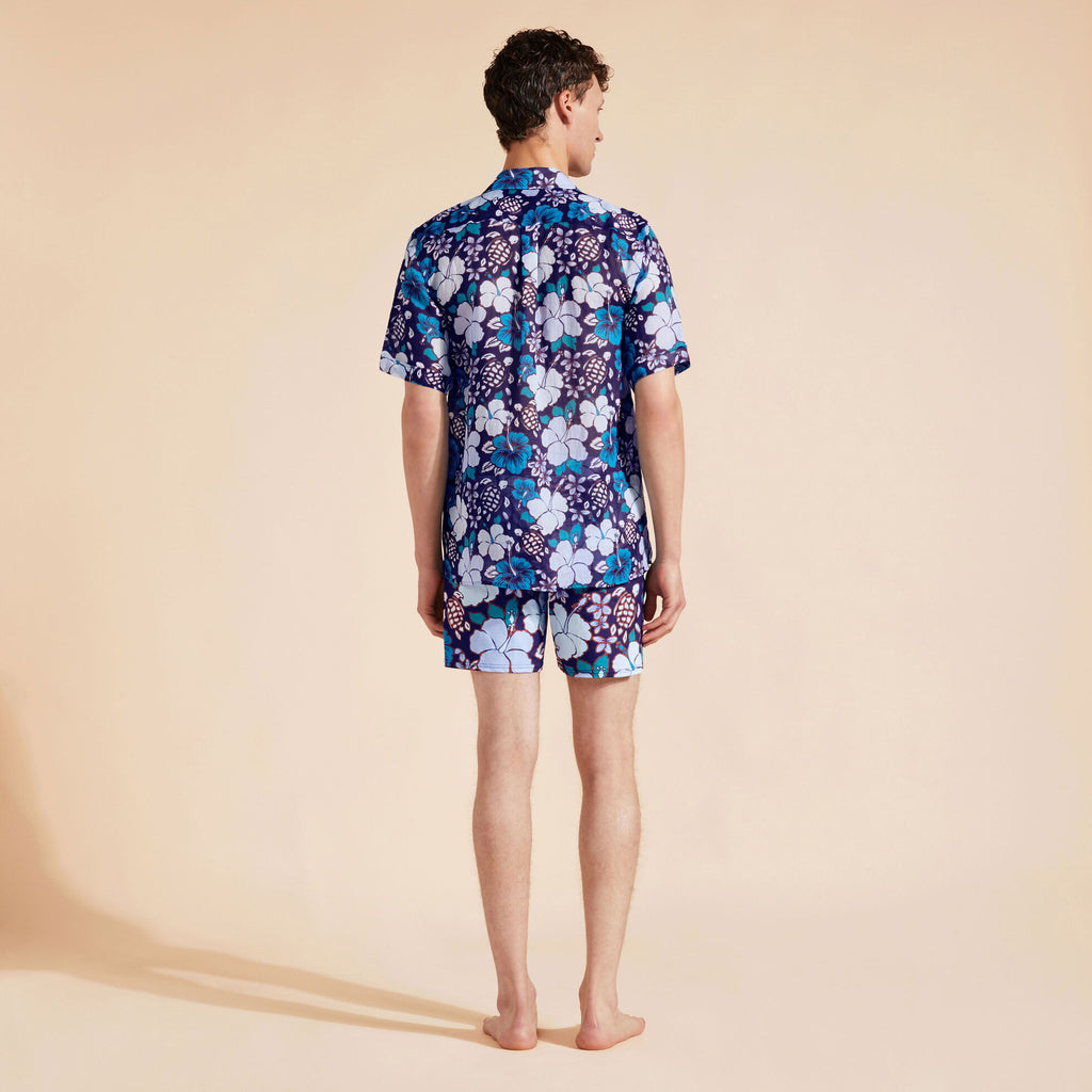 VILEBREQUIN Men Bowling Ramie Shirt Tropical Turtles