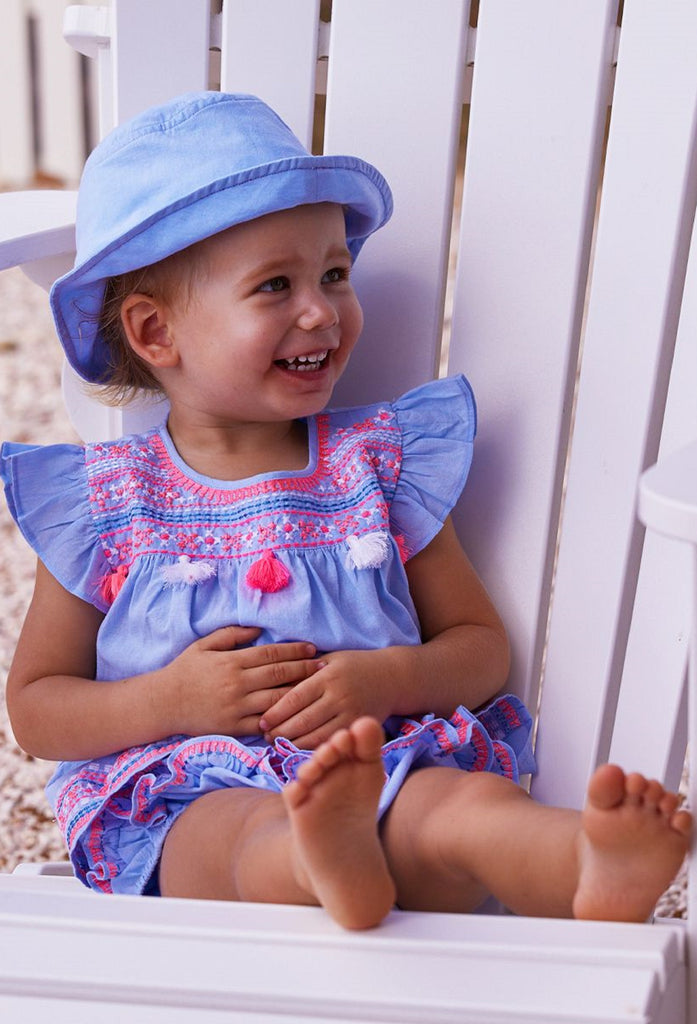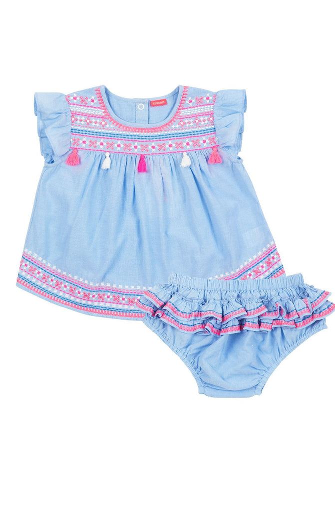 SUNUVA Baby Girls Blue Embroidered Cotton Set