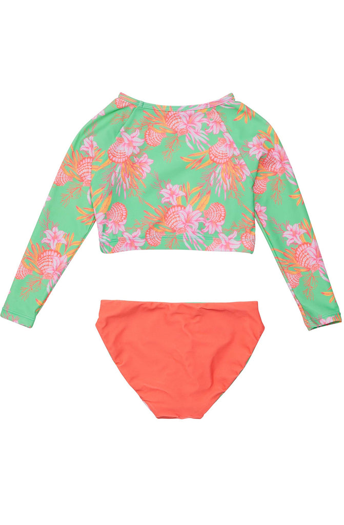 SNAPPERROCK Girls Coastal Shells Sustainable Crop Lon Sleave Rash Top Set