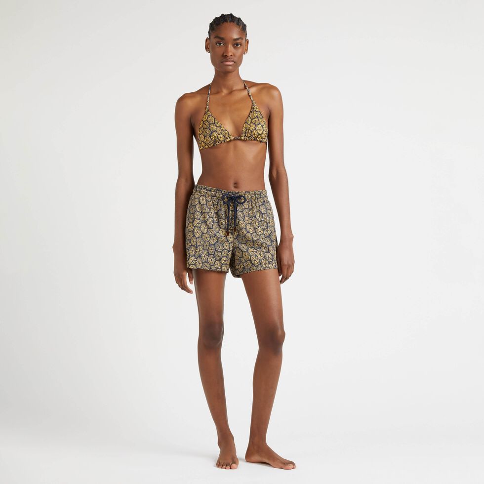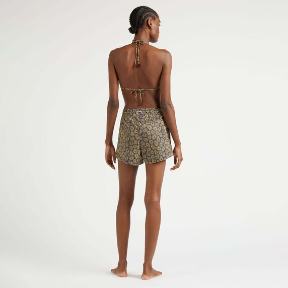 An elegant and practical pair of women's swim shorts in a classic Carapaces geometric print. Styled from recycled polyamide and elastane for a comfortable fit whether swimming or lunching.