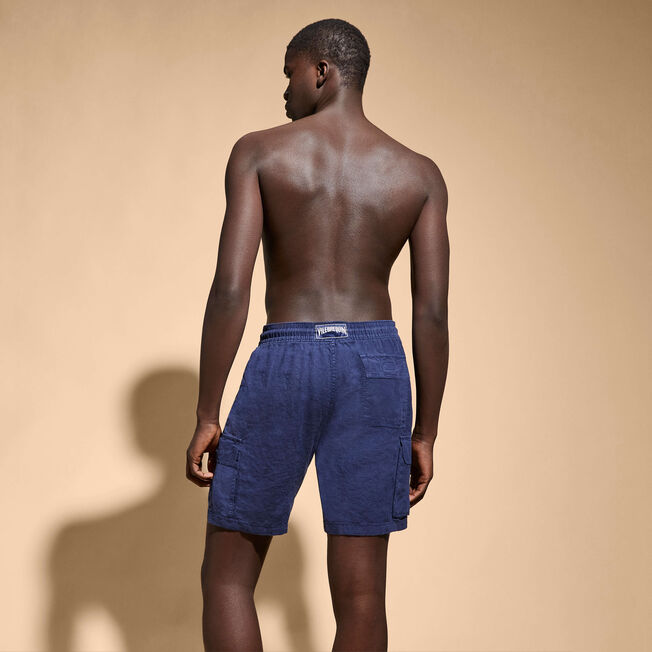 VILEBREQUIN Men Linen Bermuda Shorts Cargo Pockets