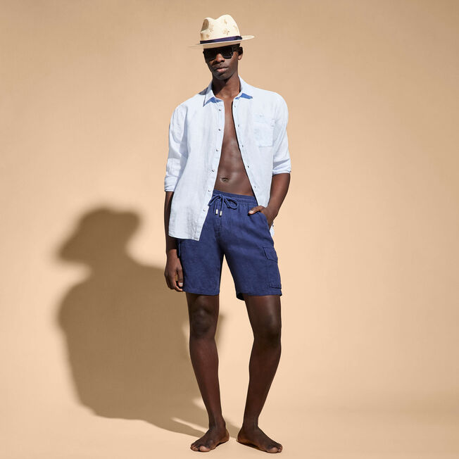 Keep your holiday on track with the Baie Man Bermuda shorts. With a casual design and cargo pockets, these soft and comfortable linen Bermuda shorts are perfect for any trip. On the beach with flip-flops, in the city with a T-shirt, or paired with a shirt for a casual evening out, it's the perfect choice for summer.