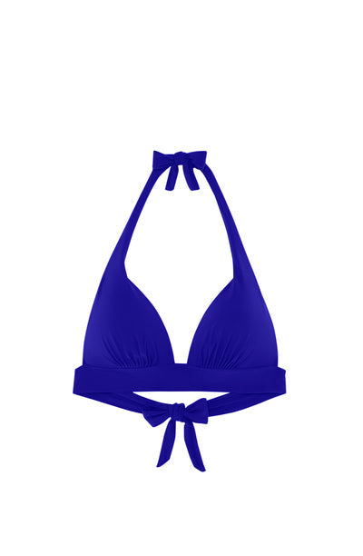 The bikini top DONIA is adorned with refined details to enhance all silhouettes. The pleated seams and the removable molded cups ensure an elegant neckline for smaller breasts. More generous breasts are perfectly supported thanks to the deep triangle cups. This is a both comfortable and feminine model. Sapphire, an enchanting deeply luminous blue color.
