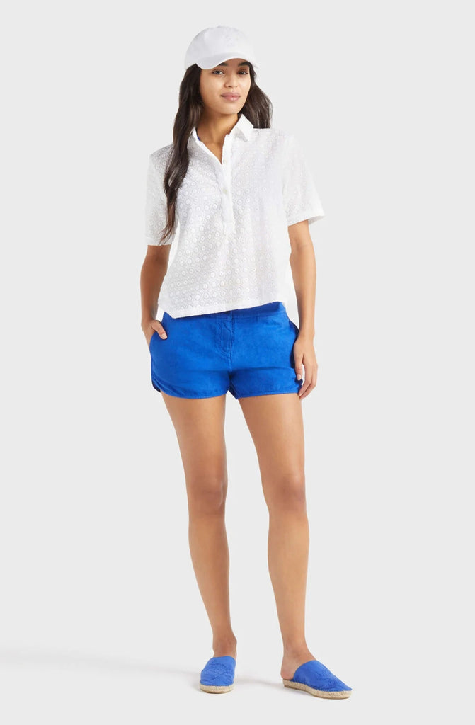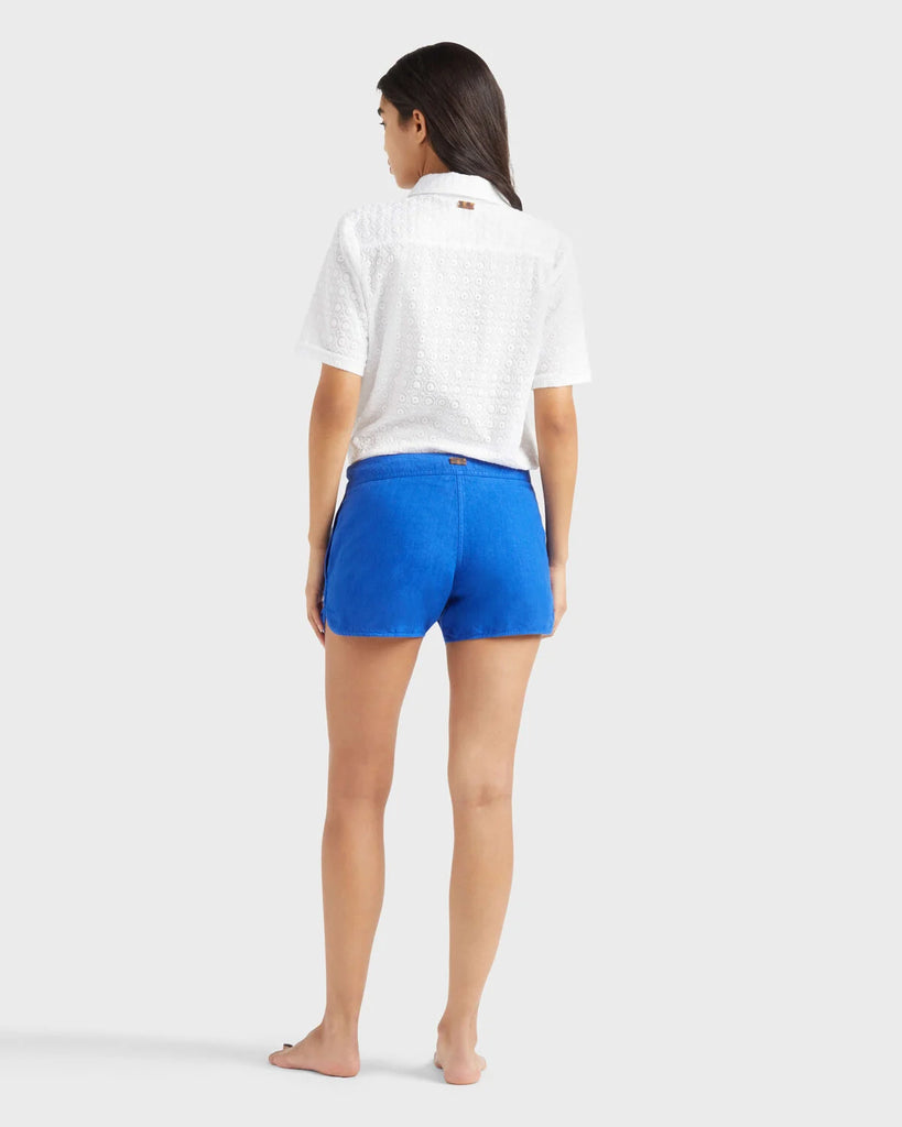 A flattering pair of women's shorts crafted in linen for comfortable wear and a cool feel. Featuring side pockets and the iconic tone-on-tone turtle embroidered on the hem.