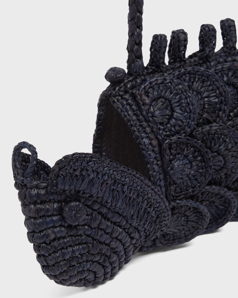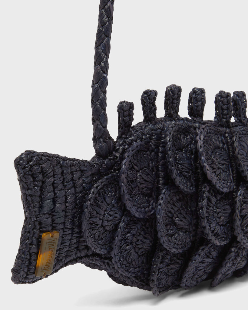 • Small fish-shaped raffia crochet bag, handmade in a workshop in Madagascar