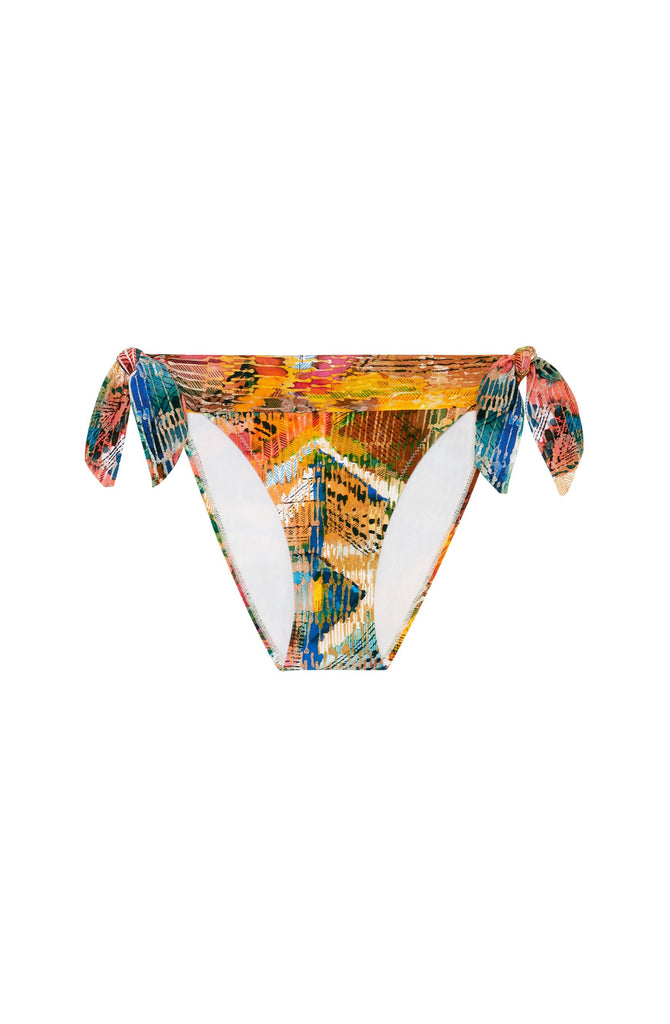 Adjustable as you wish, the bikini bottoms DIVA fit all silhouette. The ties on the hips enhance both voluptuous or less generous breasts. This classic bikini is a key piece that allows a variety of combinations for always more originality. MASAI, a vivid and multicolored tribal print.