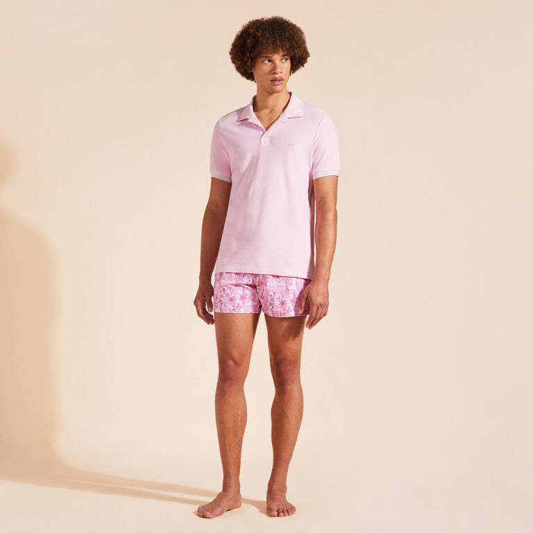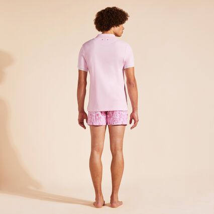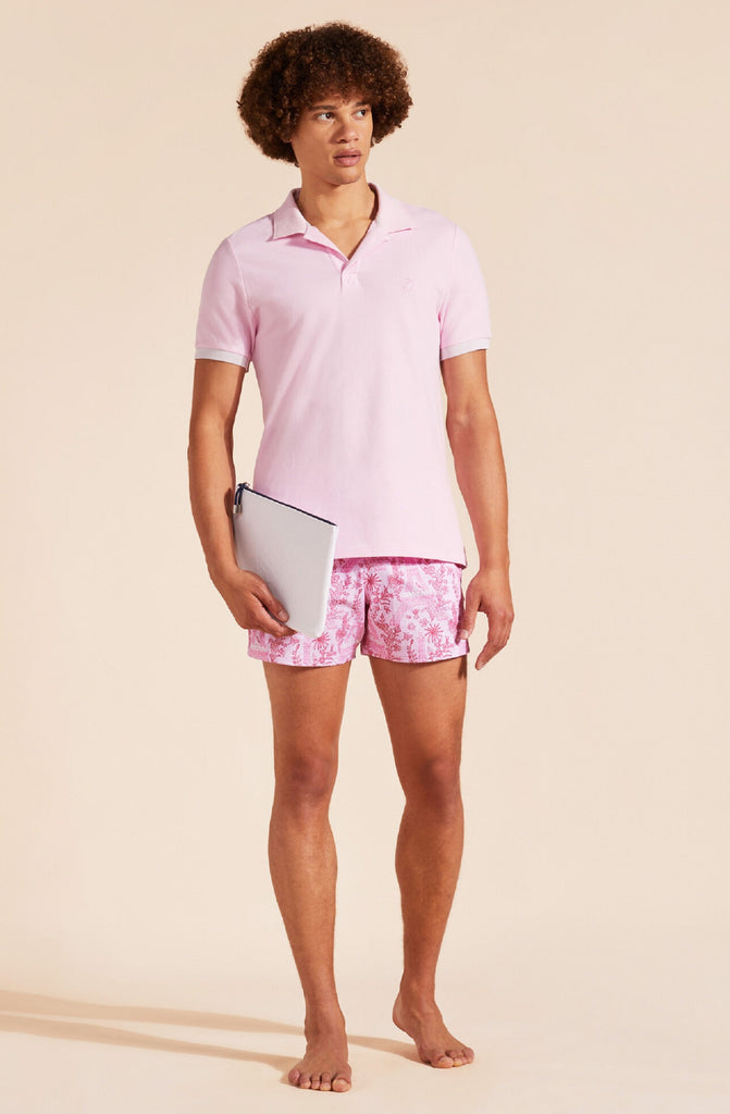 The iconic polo shirt takes center stage in the summer wardrobe with short sleeves, ribbed collar, and cuffs. The iconic embroidered turtle completes the detail.