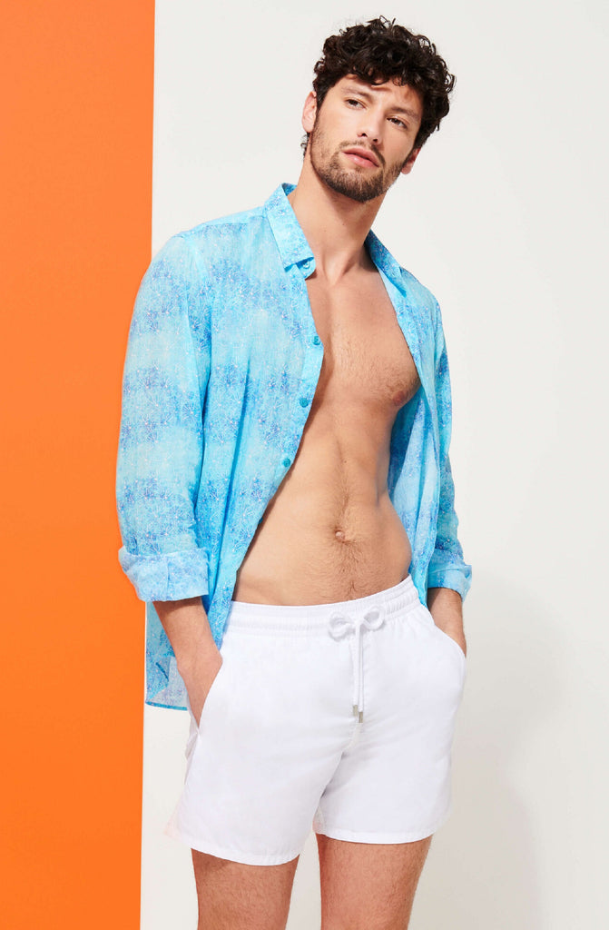 The casual elegance of Vilebrequin is embodied in the perfect lines of our Moorea men's swim trunks, a timeless style icon with drawstring, pockets and eyelets.