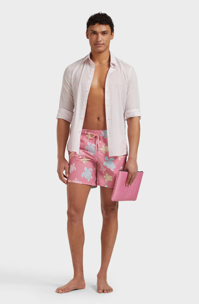 Multicoloured turtles adorn these West Coast-inspired swim shorts in recycled polyamide. Featuring an elastic waistband and Vilebrequin-engraved drawstring tips for the perfect, stylish fit.