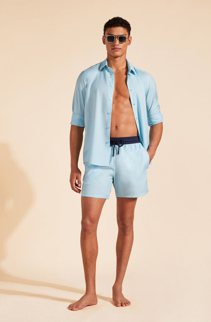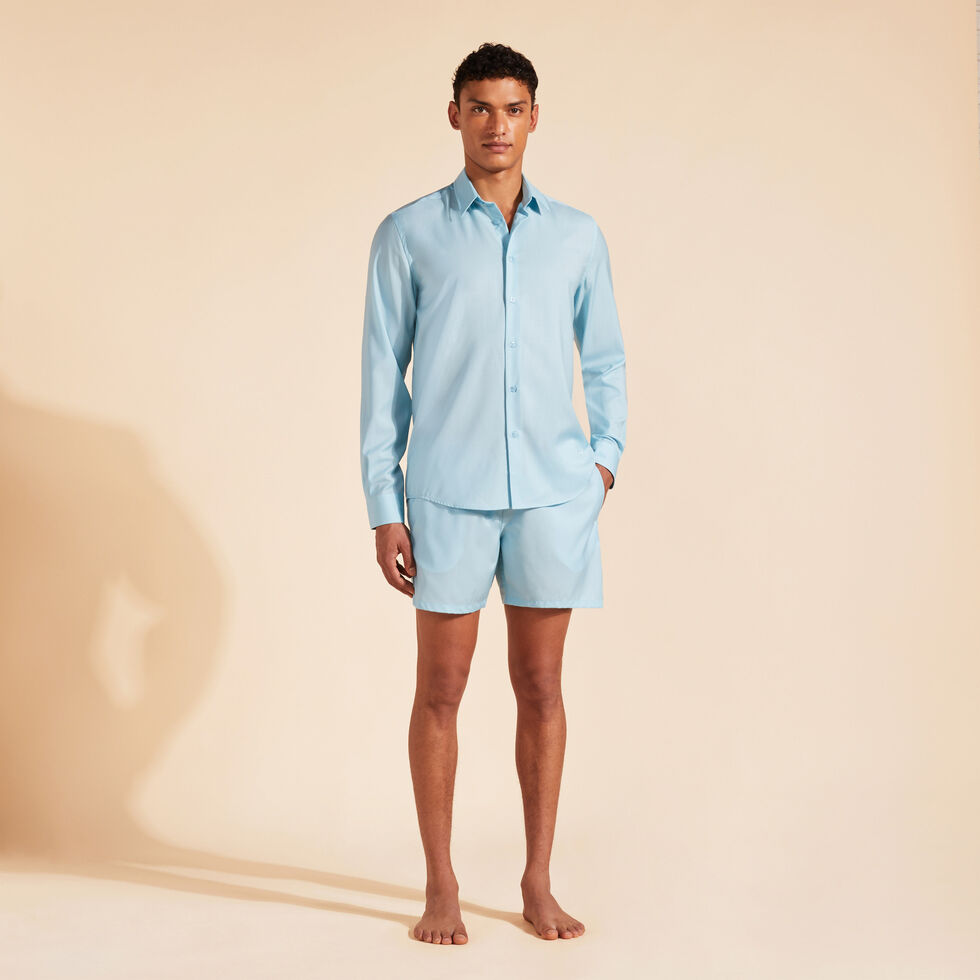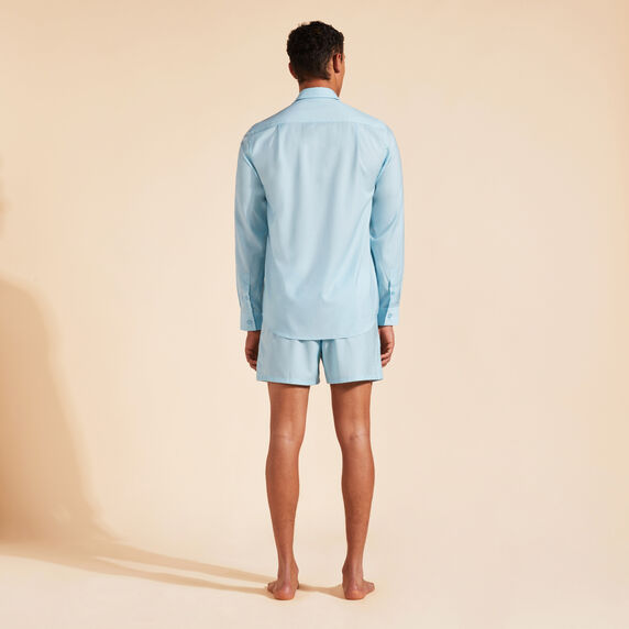 Cut from wool for a relaxed fit, this long-sleeve men's shirt is ideal for smart or casual summer occasions. The iconic turtle embroidered on the hip adds a stylish detail.