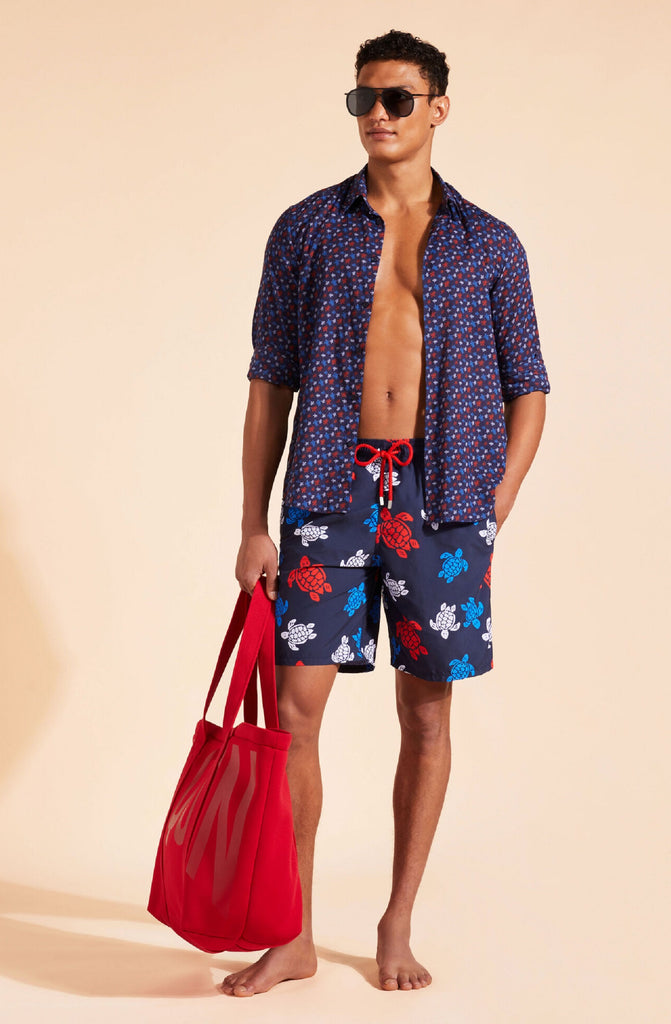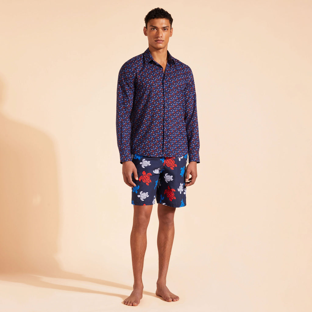 VILEBREQUIN Unisex Cotton Voile Lightweight Shirt Micro Ronde Des Tortues Rainbow