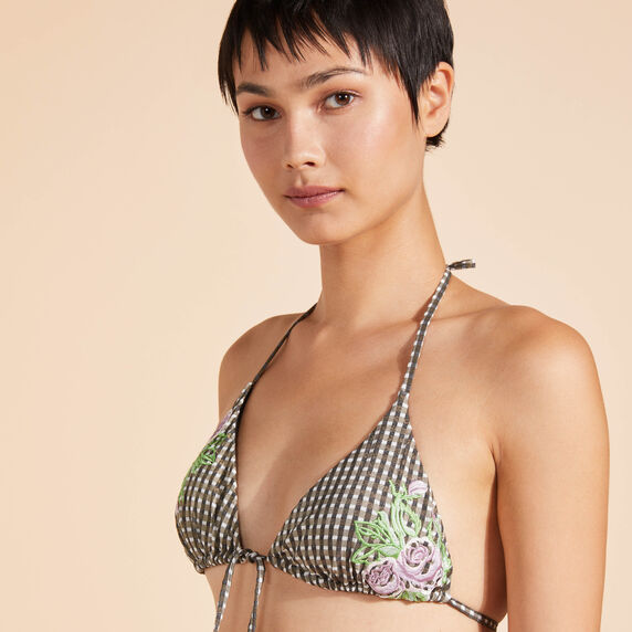VILEBREQUIN Women Triangle Bikini Top Pocket Check Embroidered Flowers