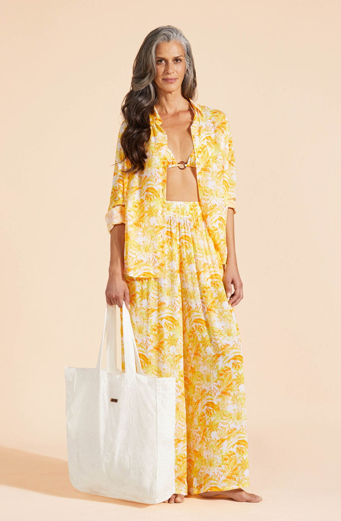 A long-sleeve tropical-inspired viscose shirt that combines keeping cool with style on or off the beach. Makes the perfect bikini or one-piece swimsuit cover-up.